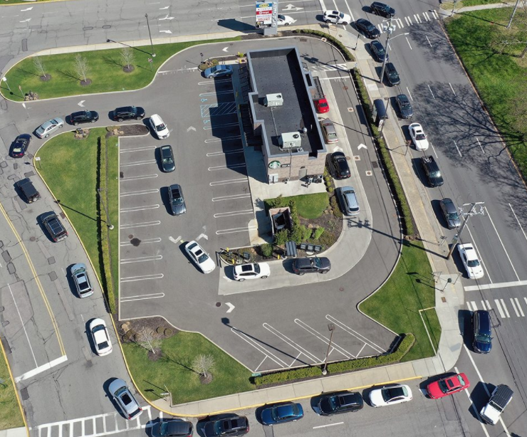 Picture from a drone showing 20+ cars in line for the Starbucks drive-thru in late 2020