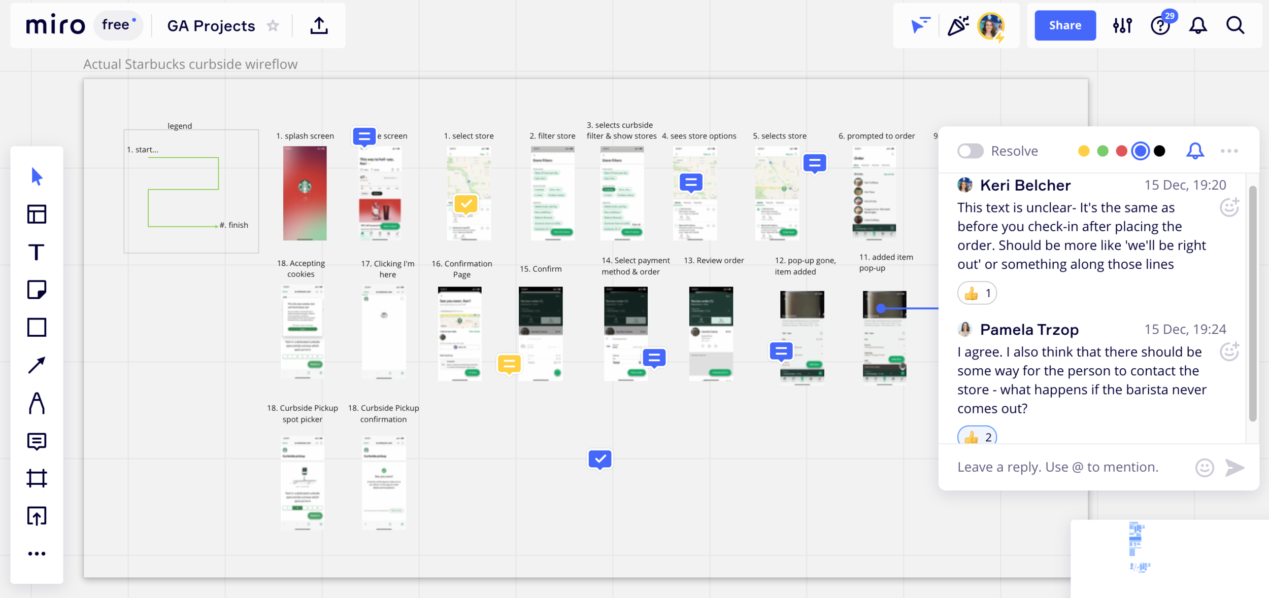 Miro is a fantastic tool to use for virtual group affinity mapping, group project critiques, and creating user flows as a group