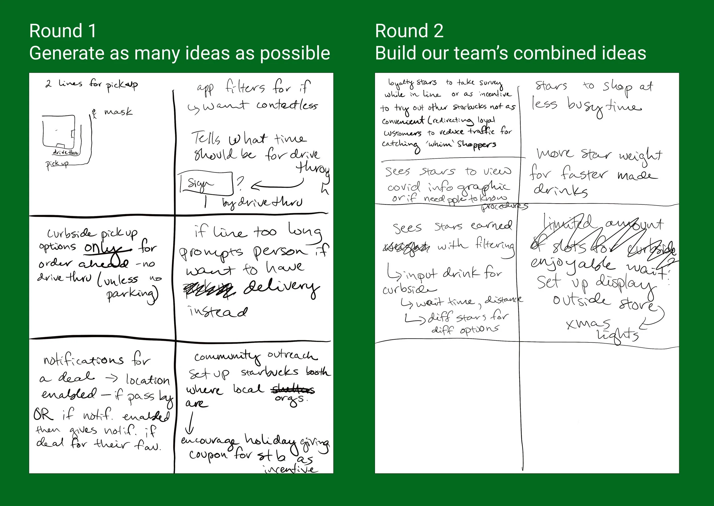 The first phase was for research to discover and define the challenges Starbucks is facing